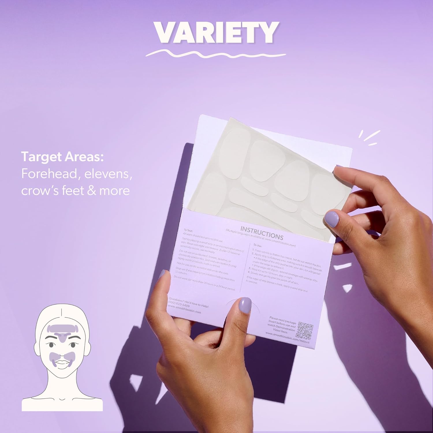 Smoothies Variety Wrinkle Patches for Face Overnight - Facial Patches for Forehead, Elevens, Crows Feet and more, 160 Facial Adhesives per Box - Face Tape, Made in the USA