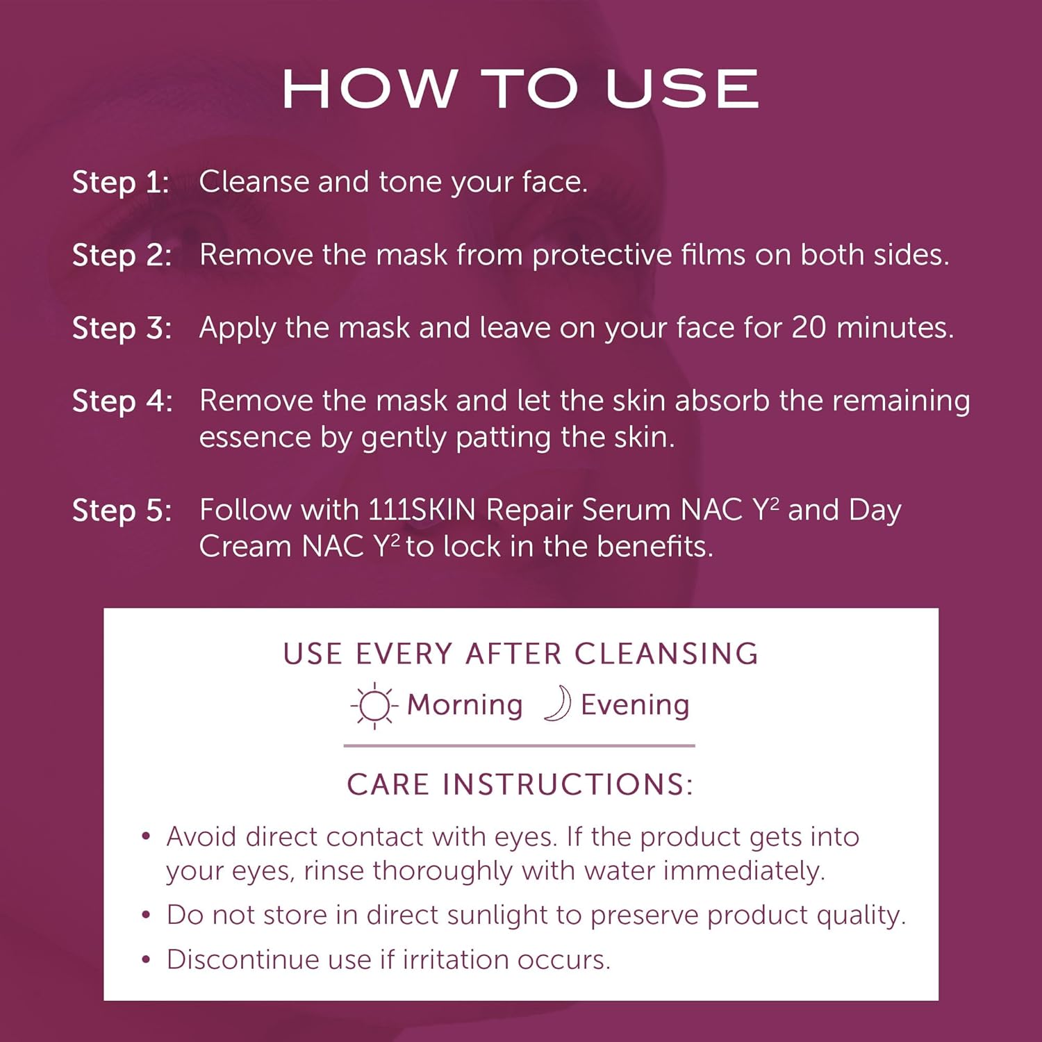 111SKIN Y Theorem Bio Cellulose Facial Mask for All Skin Types, Hydrating Face Mask with NAC Y2, Ectoin & Centella Asiatica, Enhances Skin Elasticity, Skincare Sheet Masks for Self Care, 5x 0.78 fl oz