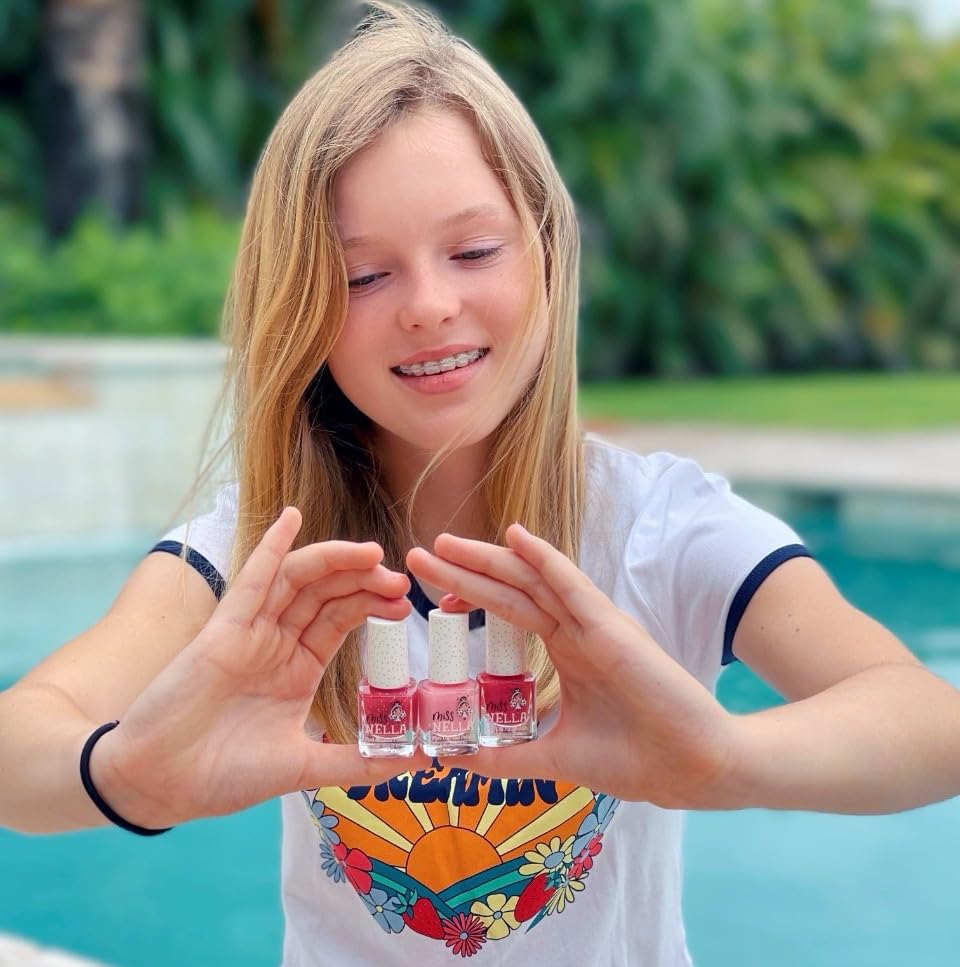 - GREAT SHADES: All kids are drawn to bright and happy colours, which is why Miss Nellaโs nail polishes comes in a great range of shades with fun names that you can never forget: Sugar hugs (glittery see through pink), Cheeky Bunny (light shimmery pink) & Tickle me (dark shimmery pink)