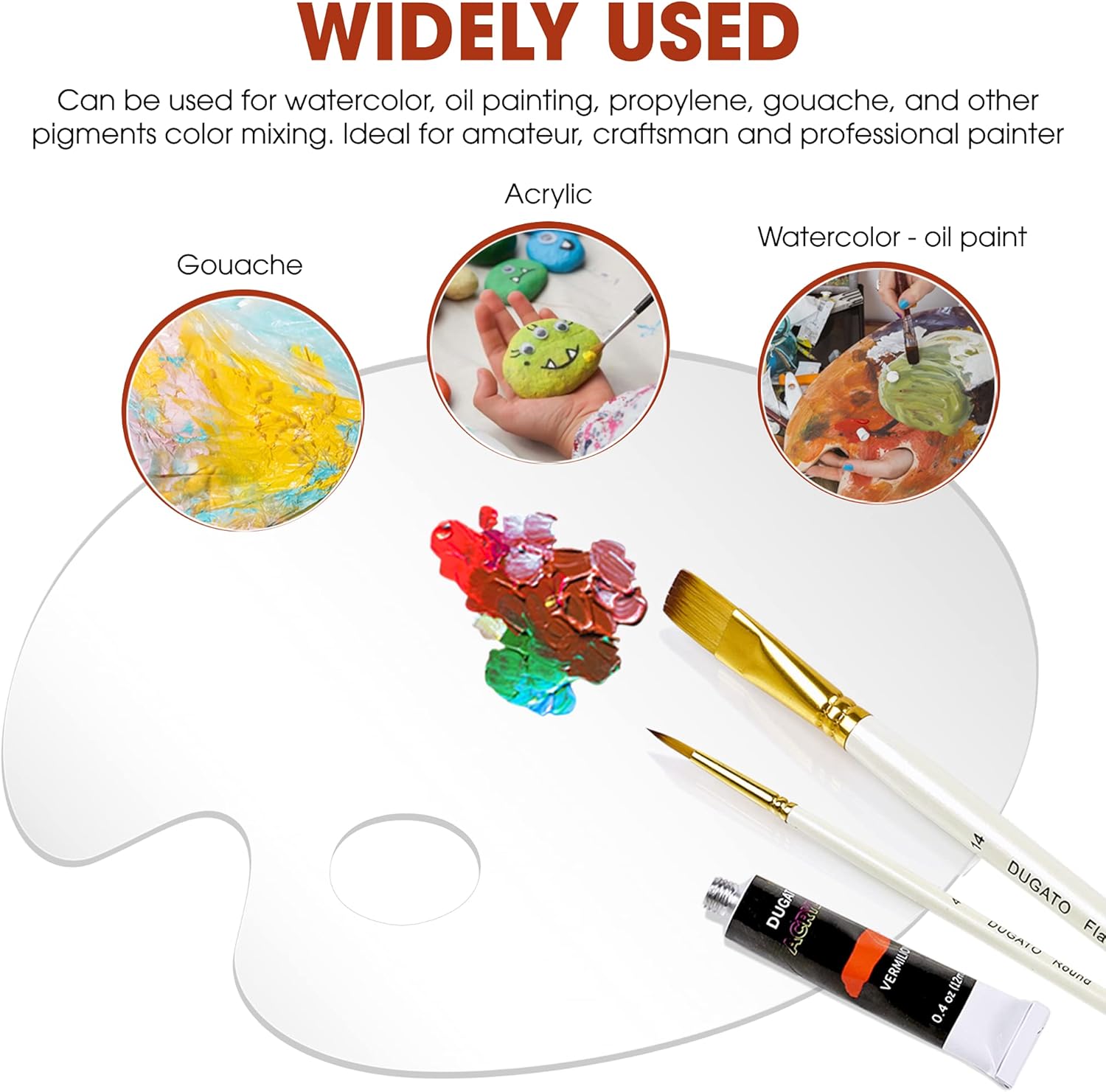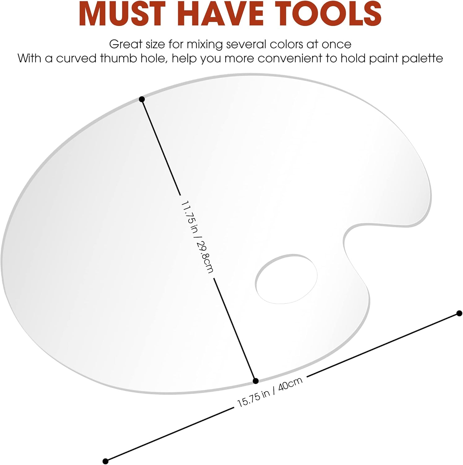 - π¨ Oval Shaped Pallet Size: 15.7 x 11.8 Inches - Great size for mixing several colors at once. Suitable for art projects, makeup parties, and crafts. Widely used in parties, workshops, art groups, or lessons.