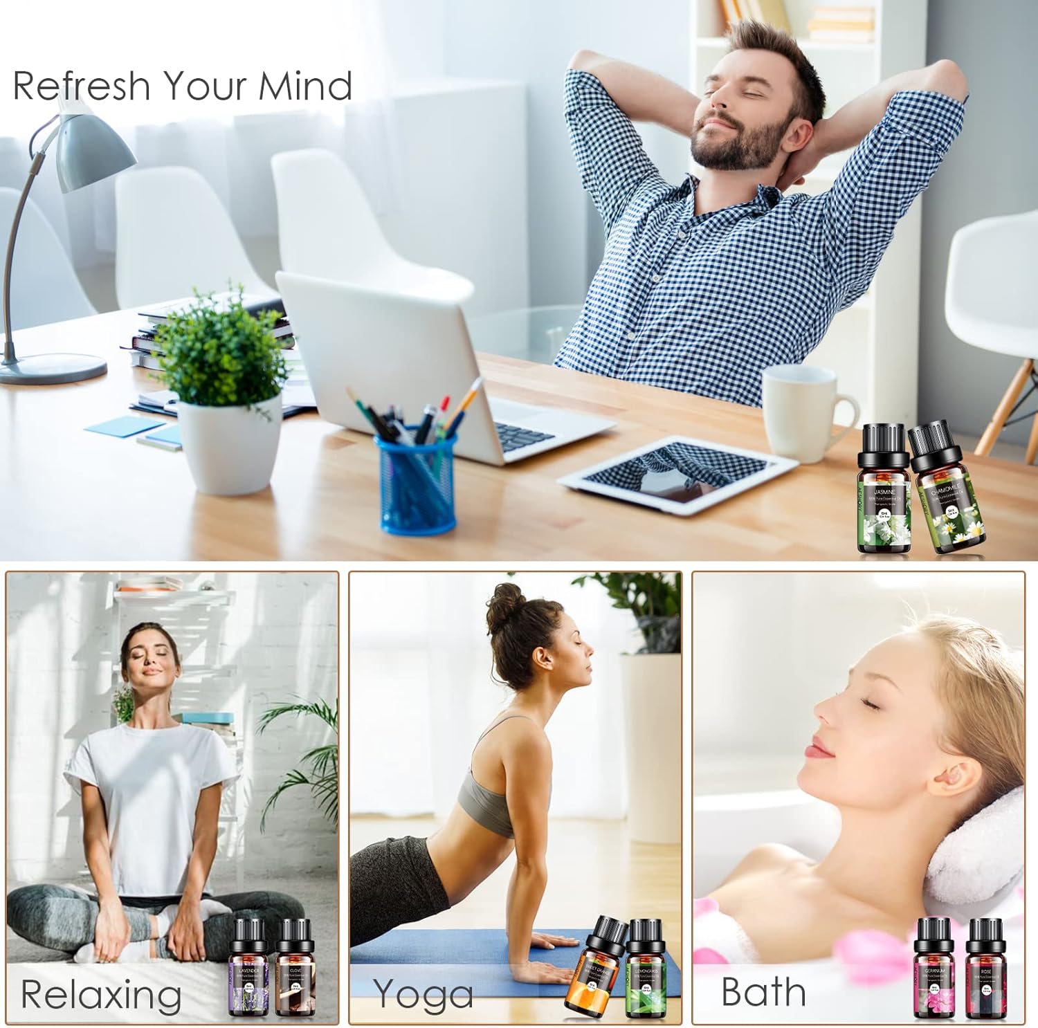 - 🎁Multi-Use: Our essential oils always adopt rigorous quality control standards. Simply add a few drops to any aromatherapy diffuser and fill your entire room with that aroma. And suitable for humidifier, aromatherapy, steam inhalations, hair or skin care, massage, bath, saunas, air freshening, home fragrance (bedroom, living room, bathroom, study room), office (workstation, conference room), yoga room and spa, etc.