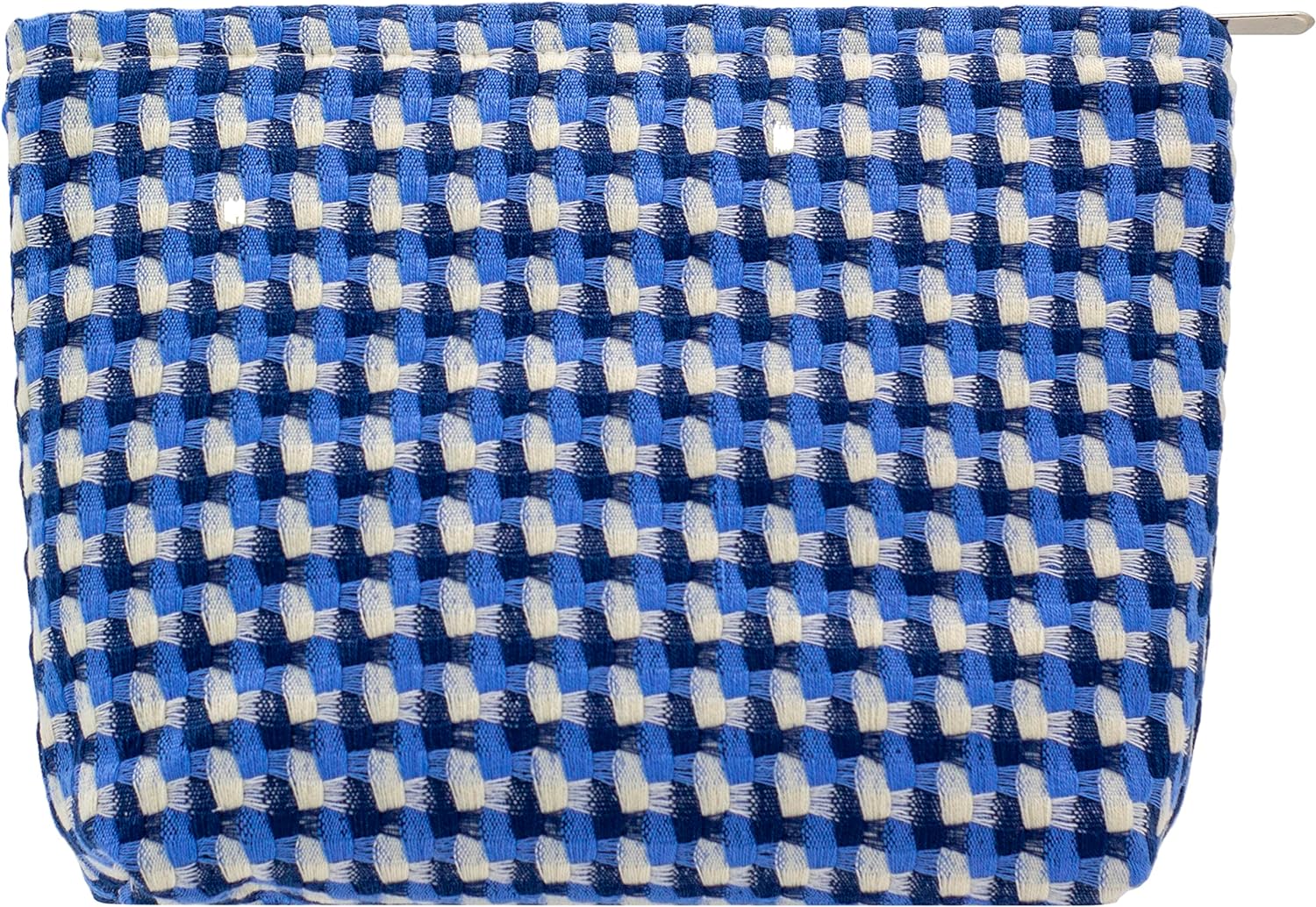 Makeup Bags for Purse Zipper Cosmetic Pouch Large Travel Canvas Make Up Organizer Tool Pouch for Women and Girls,Grid Blue