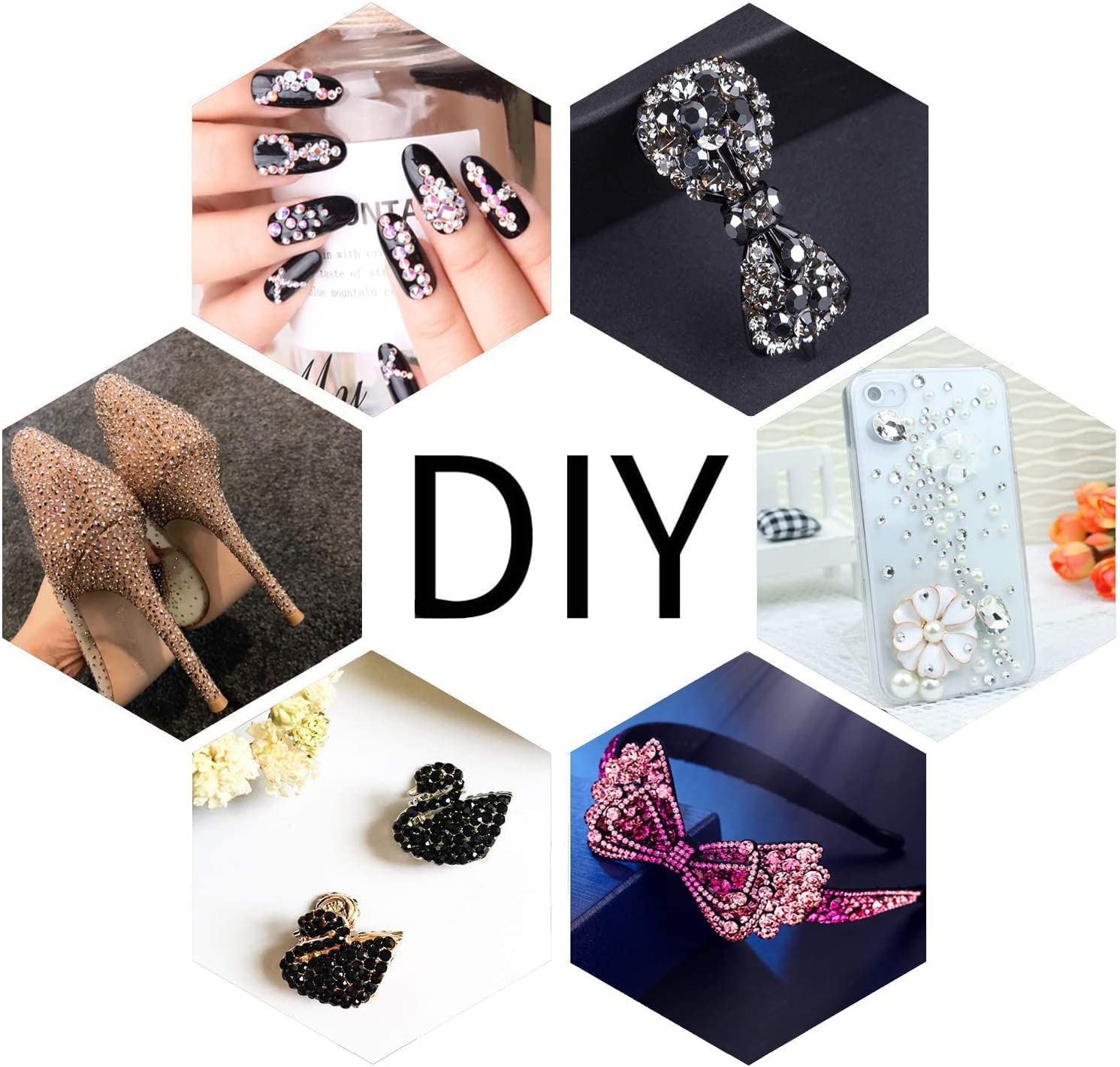 - Wide application: You can use these crystal gems in 3D nail art, DIY crafts, decorating jewelry design, jewelry making, phone, face eye makeup, card crafting, shoes, bags, wedding dress, books, guitar, car plates, table scatter and so on.