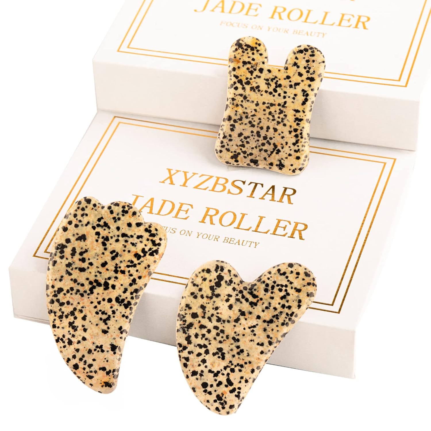Gua Sha Facial Tools Set of 3 Guasha Massage Tool Jade Gua Sha Scraping Massager for Face,Neck, Eyes and Body,Jade Stone Guasha Board 3 Packs (Speckled Jade)
