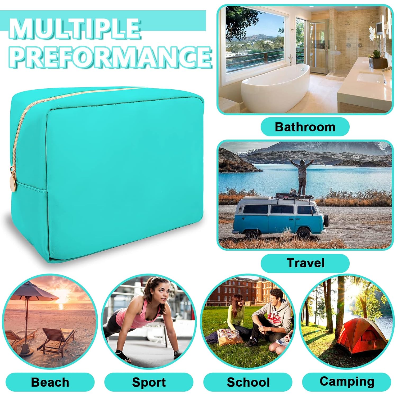- 【Multi-purpose】The preppy makeup bag makes it easy to pack and carry cosmetics, jewelry, sanitary napkins, brushes, small electronic accessories, toiletries, medications, tools or other travel essentials. It's a great bag for travel, parties, camping, beach, gym, etc.