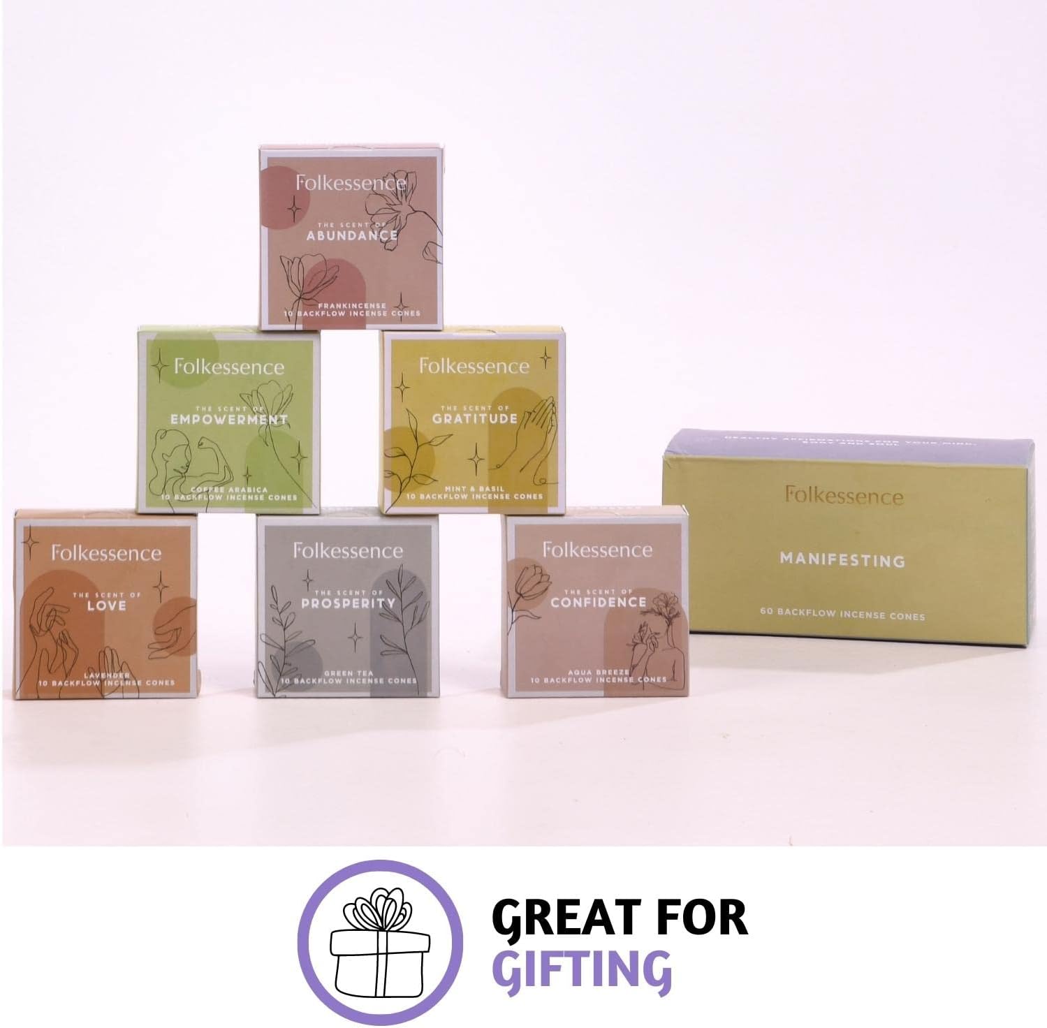 - [ DECORATIVE - Perfect Gift ] : With elegant packaging, our backflow insence cones are a thoughtful gift for your loved ones on housewarming, birthdays, anniversaries, and celebrations. They can also be used to elevate your home dรฉcor.