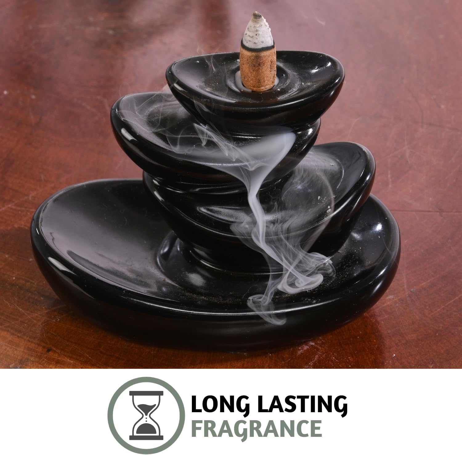 - [ QUALITY ] Handcrafted to perfeection, each of these Folkessence cone incense backflow have a long-lasting fragrance that will leave you calm and relaxed. They create a consistent effect as the smoke flows down the tower like a waterfall.