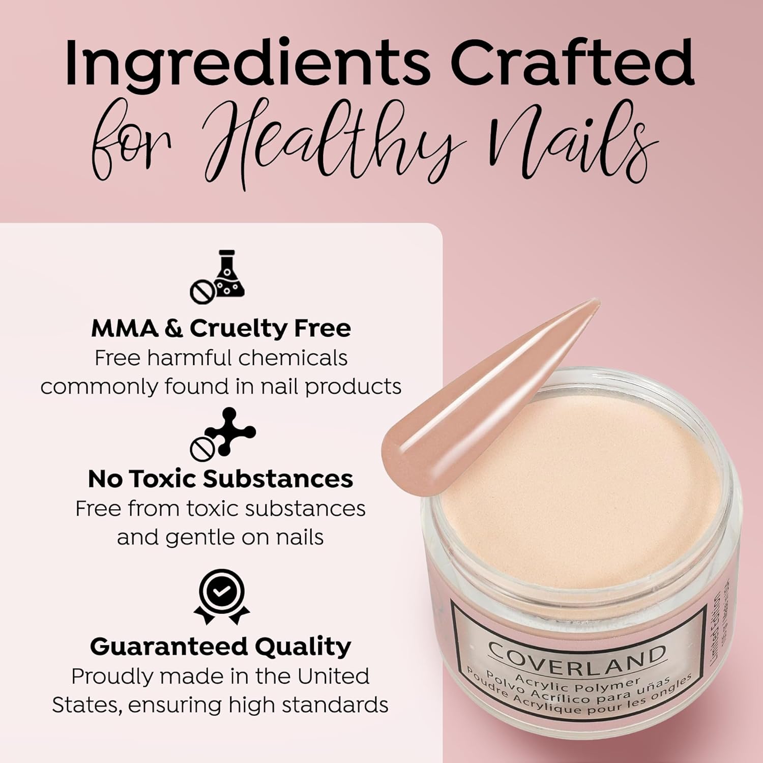 - βοΈππππ ππππππππ πππππ: The flexibility and adhesion properties of Coverland colored acrylic nail powder make it easy to shape nails with precision, and offers nice control for professionals who prefer to work with a polymerization rate of moderate to fast.