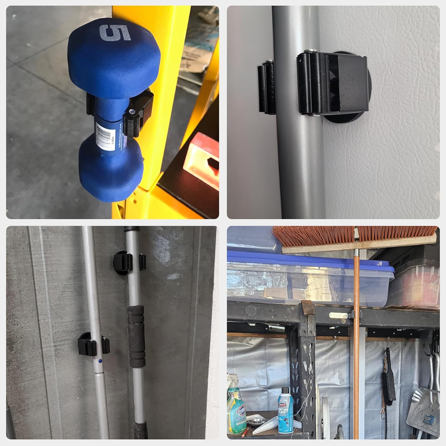 - Universal Magnetic Tool Holders: Movable broom mop clips are much handier for hanging brooms, mops, racks, rags, brushes, gloves, baseball bats, and so on. Suitable for kitchen, bathroom, garage, laundry, broom closet, and washing storage