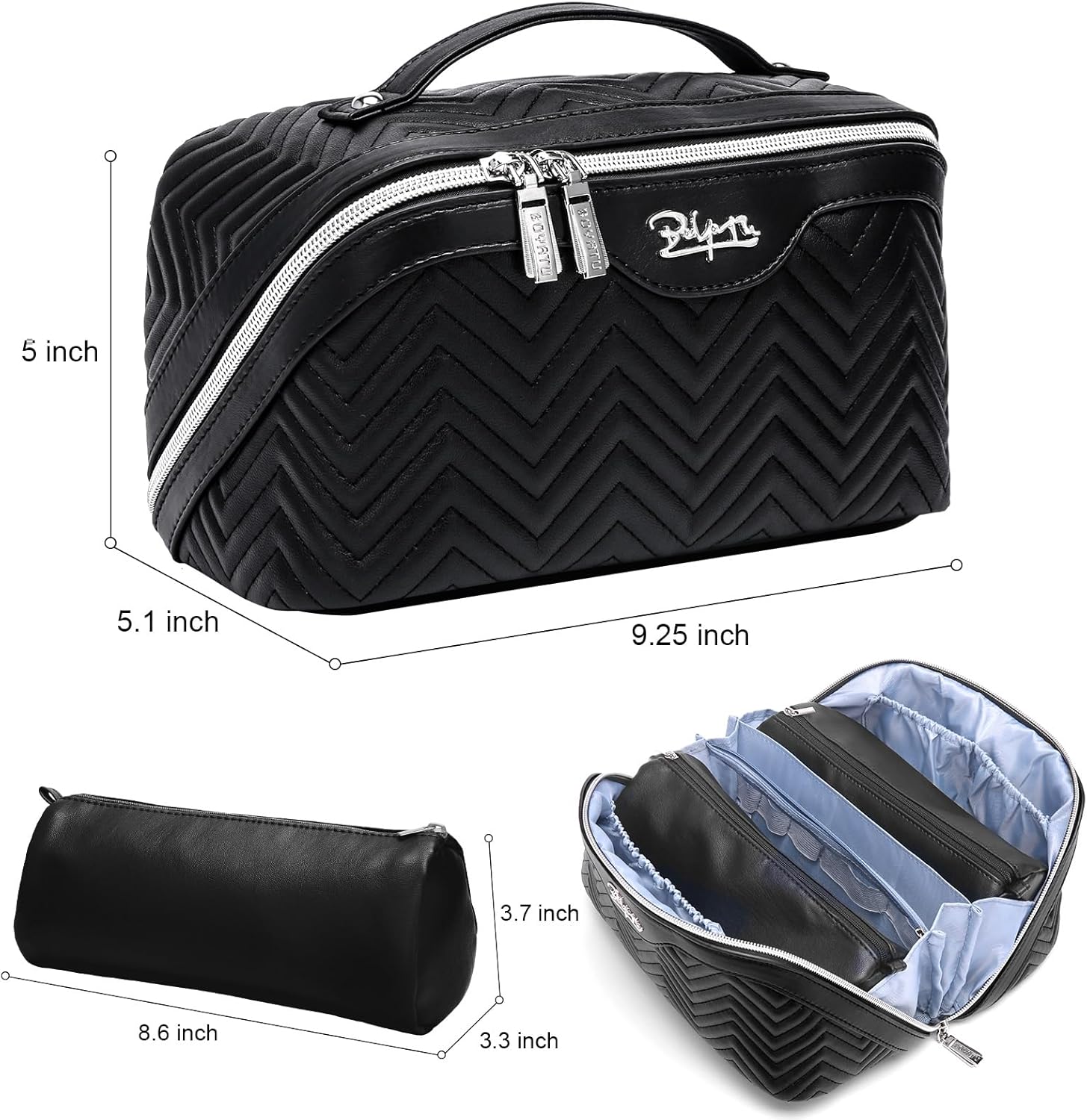 - Large Capacity Cosmetic Travel Bag: This makeup bag organizer, features a portable zipper opening. Measuring 9.25*5.1*5 inches in size, fit for 230ml toner or even larger bottles.What's more, It is a lightweight makeup bag with large capacity,just weight 0.75 LB. It is easy to hold your cosmetics and toiletries, can be used as a travel toiletry bag, preppy makeup bag, bathroom bag, cosmetic case, etc.