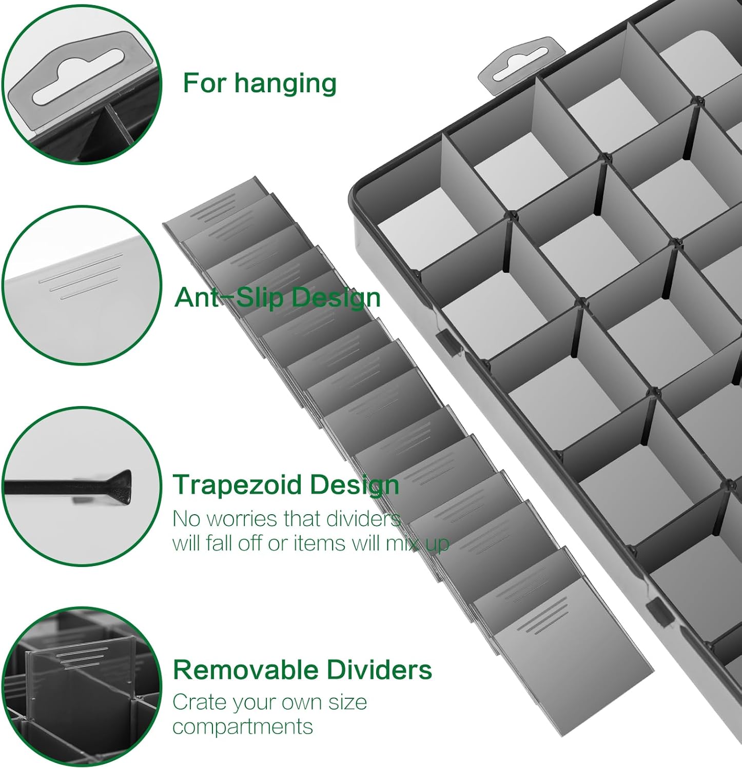 Large 24 Grids Plastic Organizer Box Adjustable Dividers,Clear Storage Box for Jewelry, Art DIY Crafts, Washi Tapes, Beads and Small Parts(Black,3Pack)