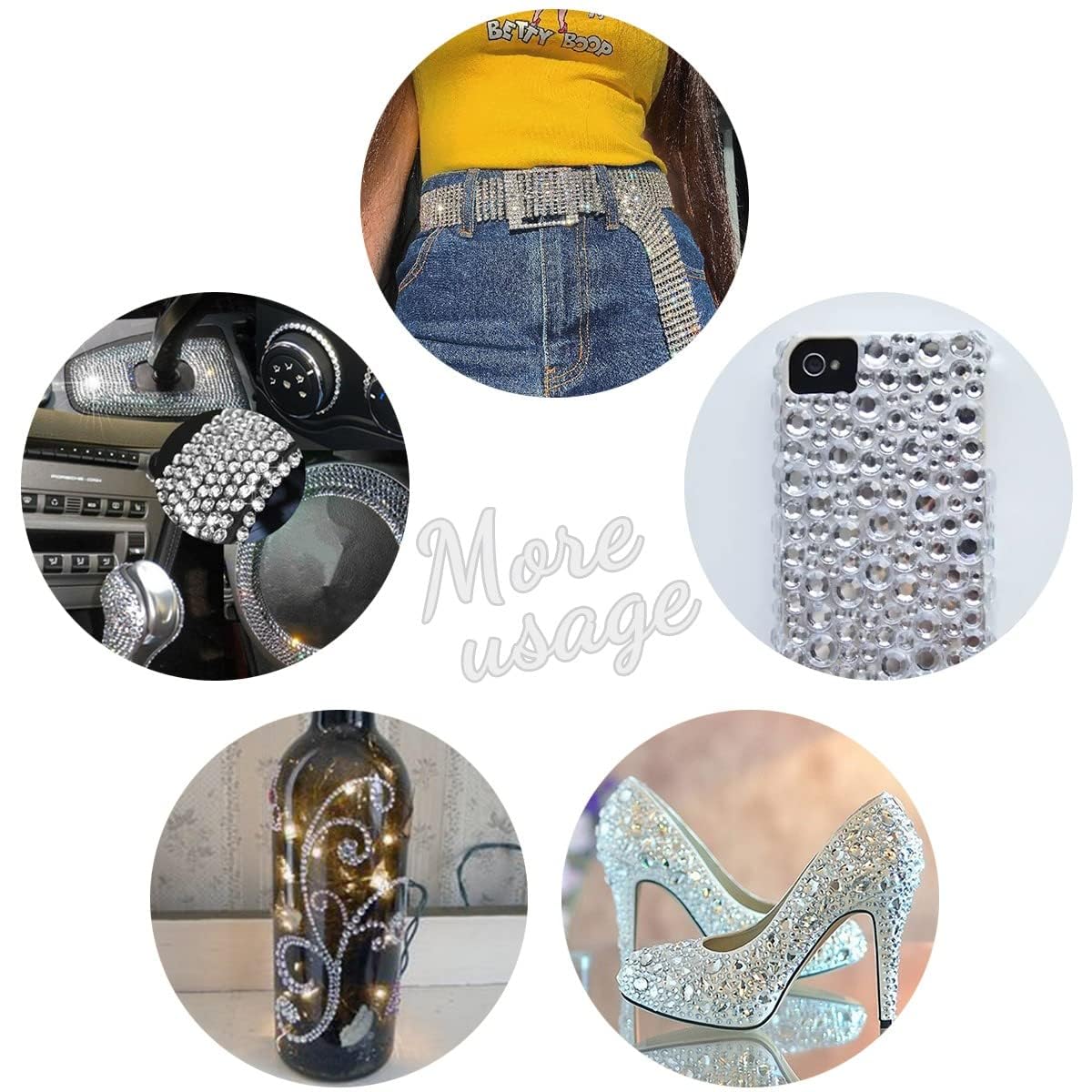 - ❤【Wide Applications】These flatback Crystal white resin rhinestones are enough for decorating tumblers, mugs, bottles, cute cups, craft, crocs shoes, clothes, skating comp dress, wedding dress, high mesh stockings, nail art charms, facial makeup, eye makeup, body art, phone cases, bags, greeting cards, books, guitar, tablets, car plates, table scatter or other items, perfect for craft embellishments.