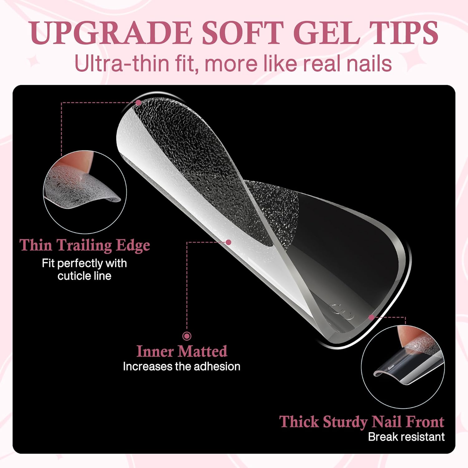 - Foldable Soft Gel Tips: Crafted from gelly soft gel material, these fake nails leave no trace even when bent. Their bright clarity allows for easy pressing, trimming, and painting, helping you create your ideal nail shape effortlessly. Perfect for a true DIY manicure.