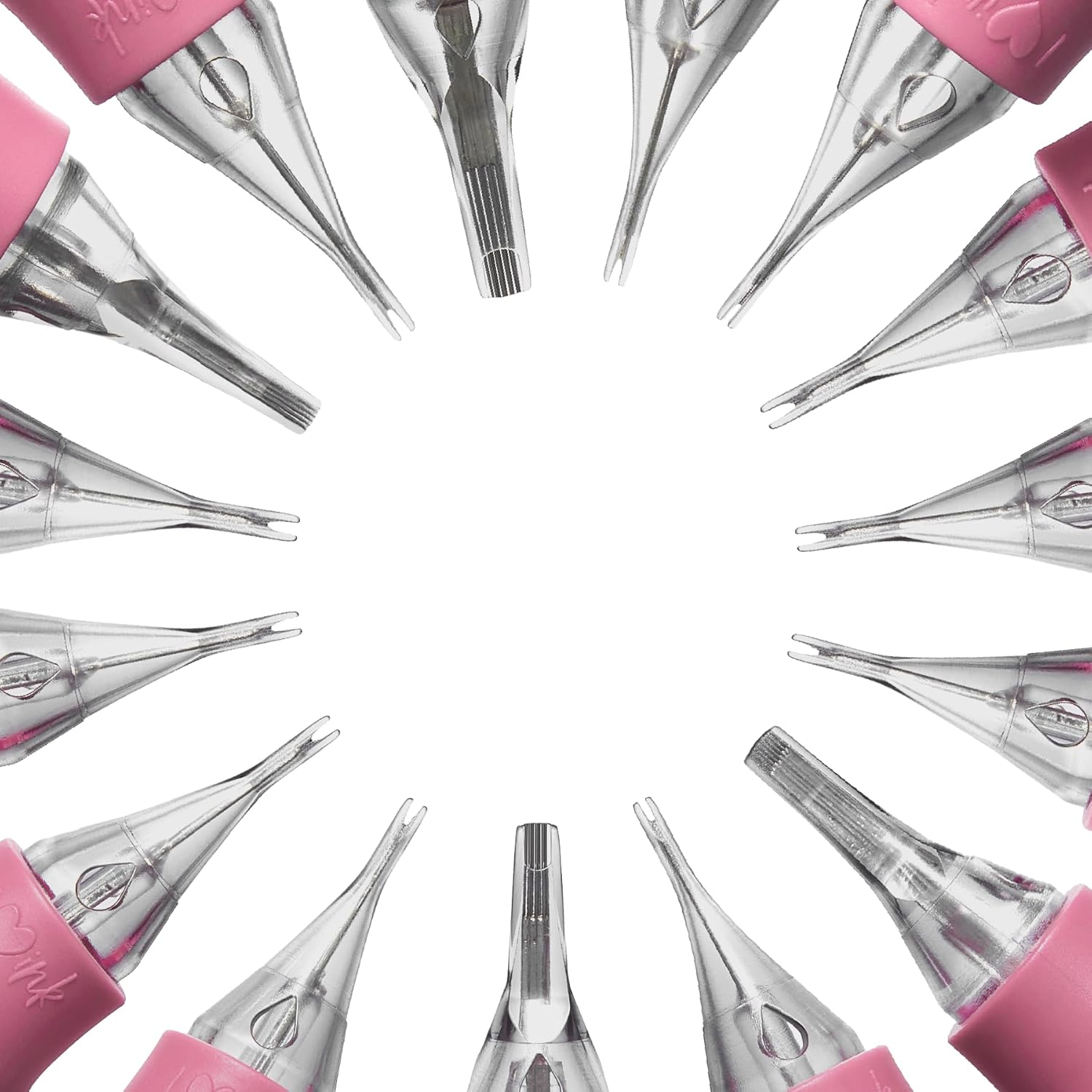 - A CONFIGURATION FOR ALL USES: Use small needles (1RL, 3RL, 3RS, 5RS) for precise details. Use large needles (7CM, 9CM) for coverage and efficiency. Use curved flat needles (5U CF, 8U CF) for hair strokes and linework. 1RL, 3RL, 3RS, and 5RS have no-drip tips for reduced pigment pooling. 7CM, 9CM, 5U CF, and 8U CF have tapered tips to increase stability and precision. Includes both long taper and medium taper configurations.