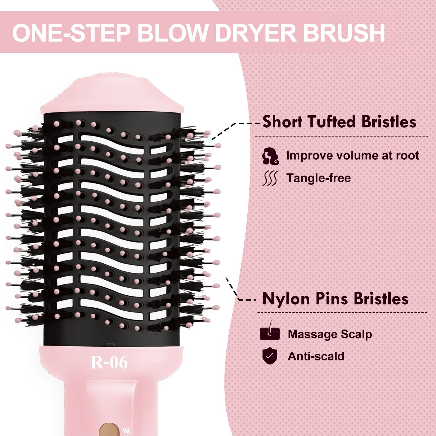 - 【4 IN 1 Drying & Smoothing & Volumizing & styling Hair】: The unique oval brush design smoothens the hair. Made with nylon pins and tufted bristles, it provides detangling, enhanced volume and better control.Different from traditional hair dryers, this volumizer can be positioned closer to the scalp to achieve maximum lift. With 360° surrounding wind and a 50% larger drying area, it allows you to save at least half the time needed for drying and styling your hair!!