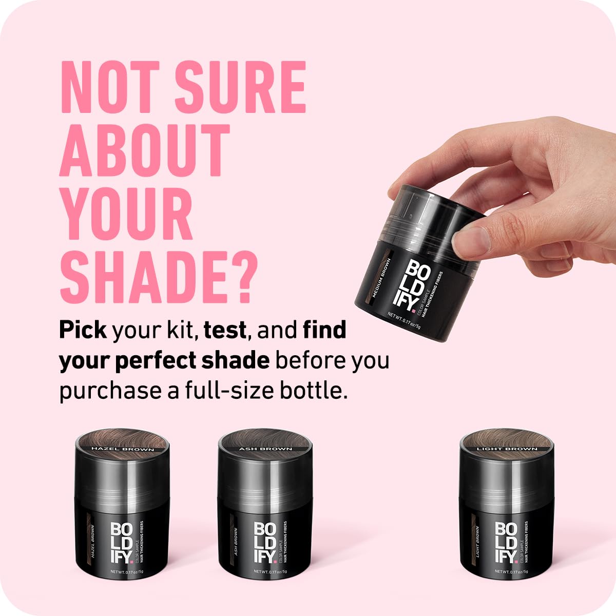 - INSTANTLY FILL IN THINNING HAIR WITH UNDETECTABLE FINISH: Made from just 3 natural ingredients, Boldify Hair Thickening Fibers bond seamlessly to existing hair for a real hair effect that's invisible to the eye. Perfect for enhancing the crown and partline, our fibers are designed with follicle-mimicking molecules for the most natural blend. Use Boldify Hairline Powder for areas with less hair.
