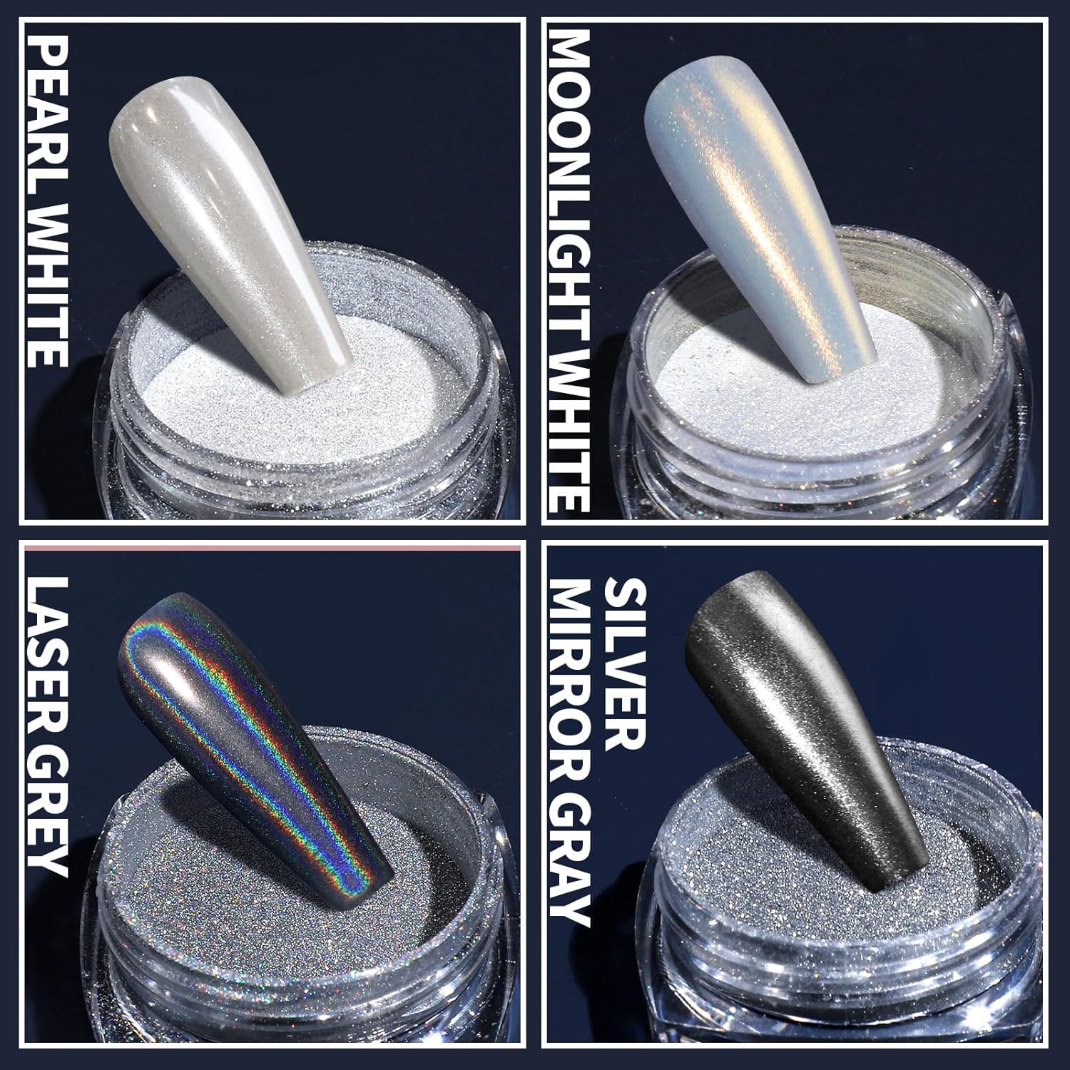 - Chrome Nail Powder &Flower Nail Stickers: 4 colors chrome nail powder, for pearl white, ice white, silver mirror and holographic, each jar has 1 gram, flexible change with different base color and have a very shining mirror effect, you can experience different style by changing base color to apply powder, add glamour to your nail art. 10 sheets colorful flower stickers, no glue-needed, more realistic and textured, easy to remove and replace at any time, make your nail art more cute and elegant.