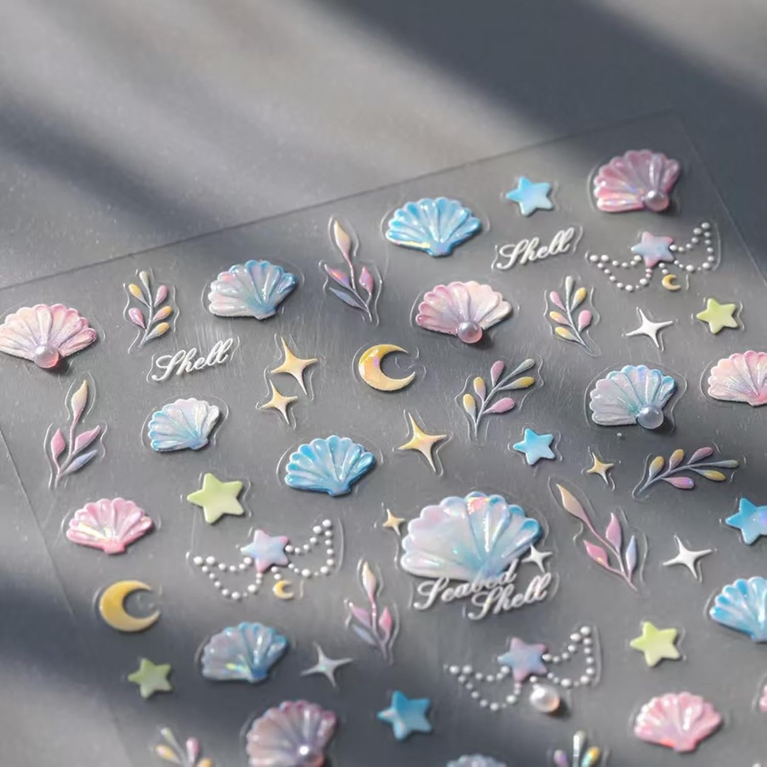 - Fashion Nail Designs:There sea shells nail decals,large number of different color for you to use and replace in daily life, nail decals are full of sensuality and elegance,Various charming patterns bring you a different mood