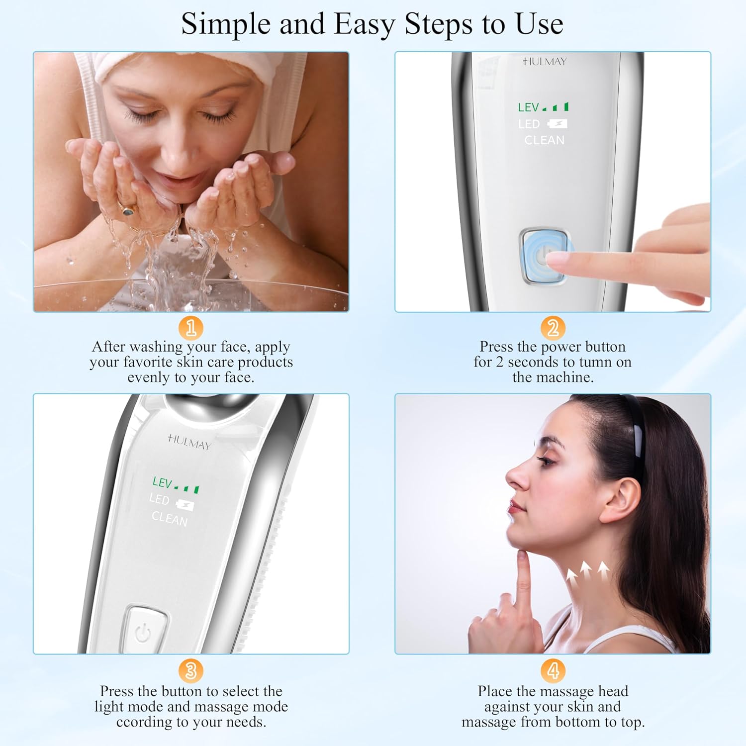 - Facial and Neck Massager: Our true beauty glow facial and neck massager offers 7 dynamic lights modes to tackle different skincare needs. Perfect for daily routines, it enhances the absorption of serums, lotions, and oils, while also helps in neck tightening, sagging skin, double chin reducer and relaxing muscles in other areas of the body