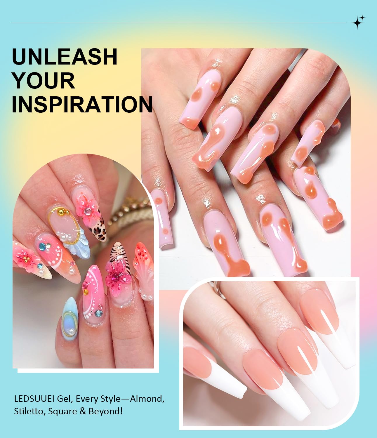 - Multifunction Nail Molding Gel: This molding gel for nails can be used for nail extension, 3D nail carving, 3D plasticity, 3D nail glue, nail decoration, chrome nail powder and Nail Sequins, etc. No need for fixing clips or other tools, you can easily complete nail extensions on your own, use your creativity and create the manicure style you like!