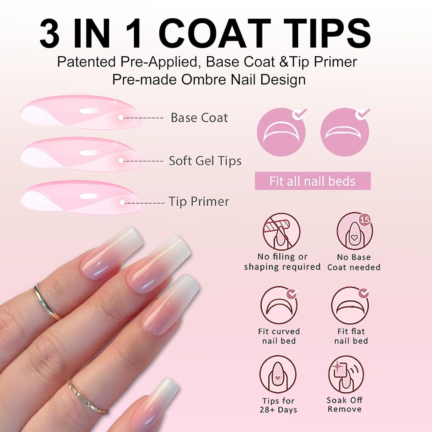 - 【High Quality Press On Nails】This White Tips fake nails are made of high quality ABS material, makes them chip-free, non-toxic, bubble-free, and super durable; Seamless fit and natural look, just like grows on you. The press on nails are pre-numbered on the tips for easily find the suitable size