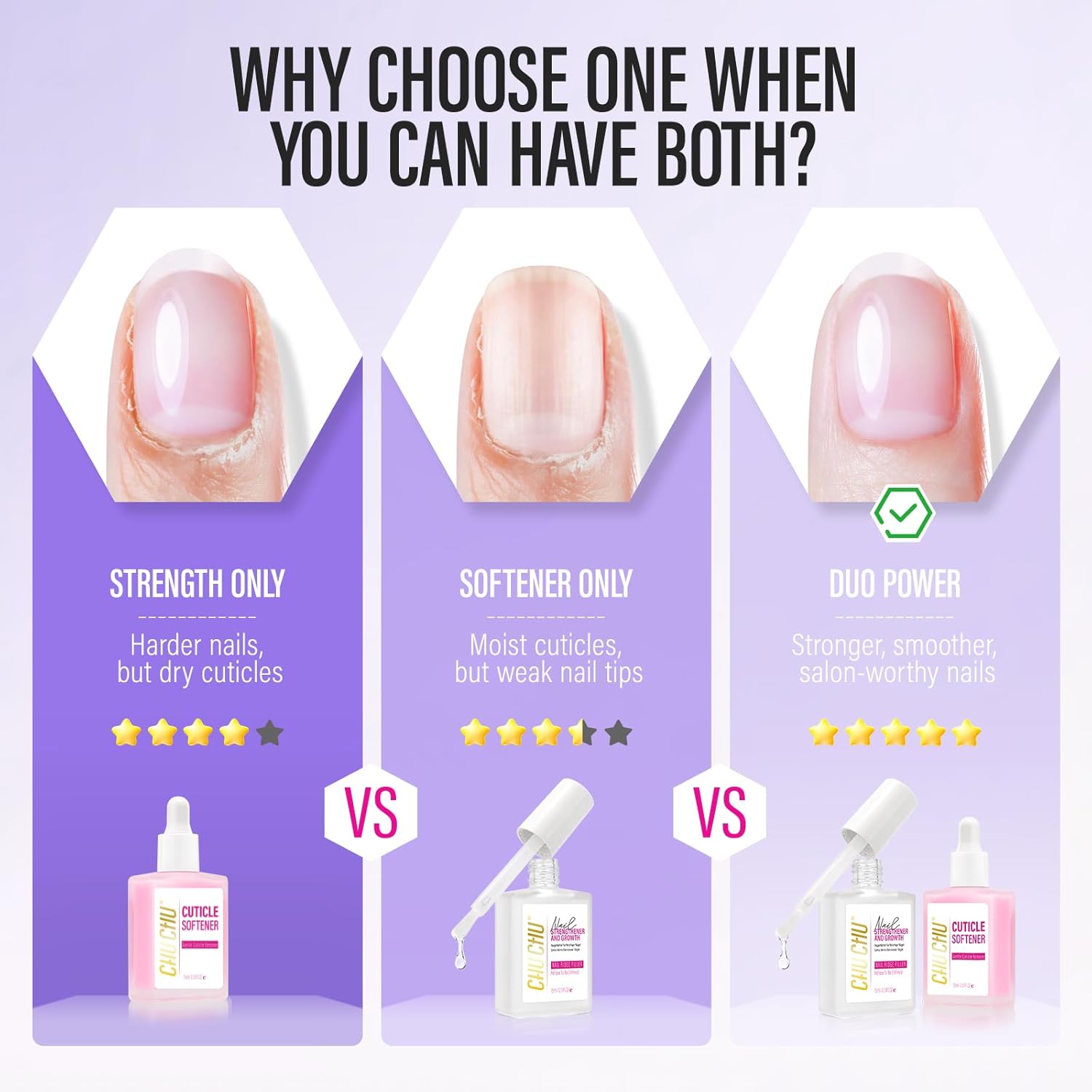 CHUCHU Nail Strengthener and Repair Kit: Pink Hardener and Growth & Cuticle Softener Set - Protein Ridge Filler Polish Quick Dry for Weak Peeling Brittle Splitting Nails - for Women Home Salon