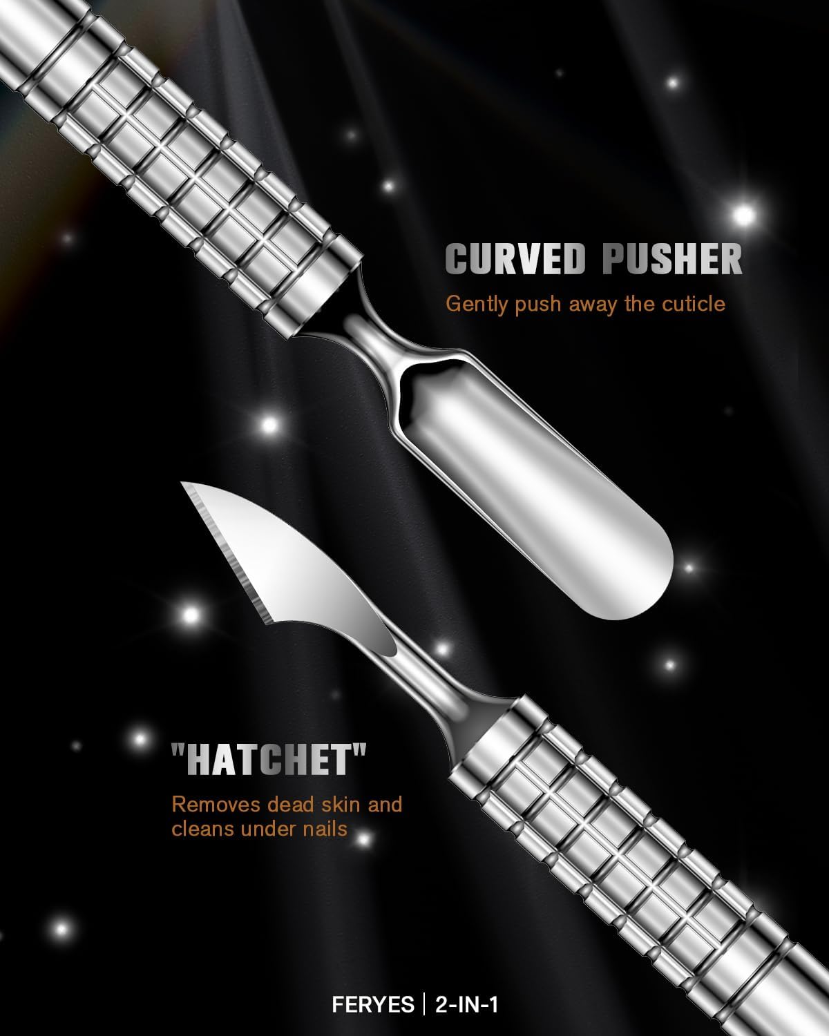 2025 Upgraded Dual Head Cuticle Pusher Remover Tool - Curved & Chisel Edge Stainless Steel, Ergonomic Non-Slip Handle for Professional Salon & Home Manicure Nail