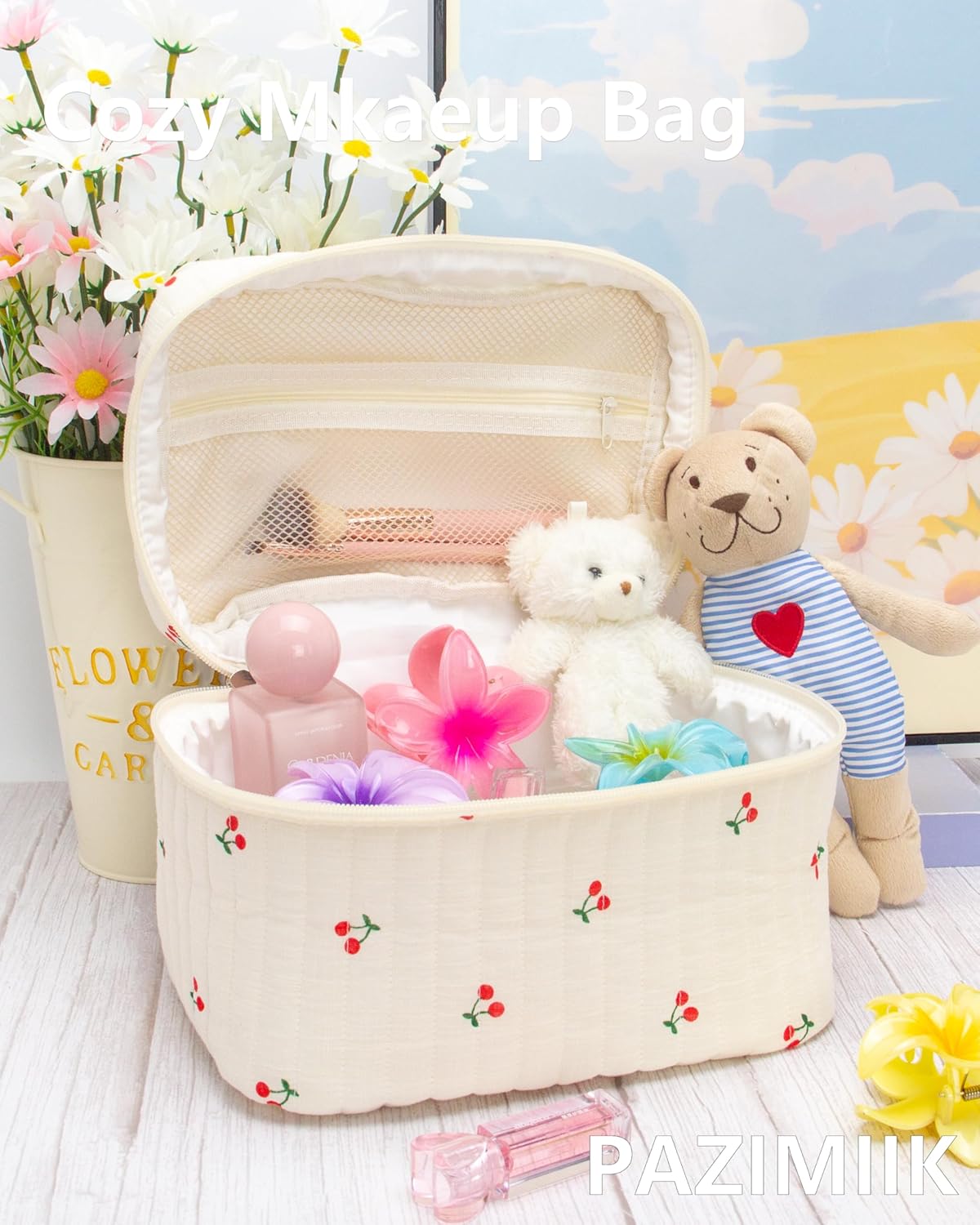 - Softness and Style: The quilted cotton exterior offers a soft and comfortable texture, combining style with functionality for your daily makeup needs.