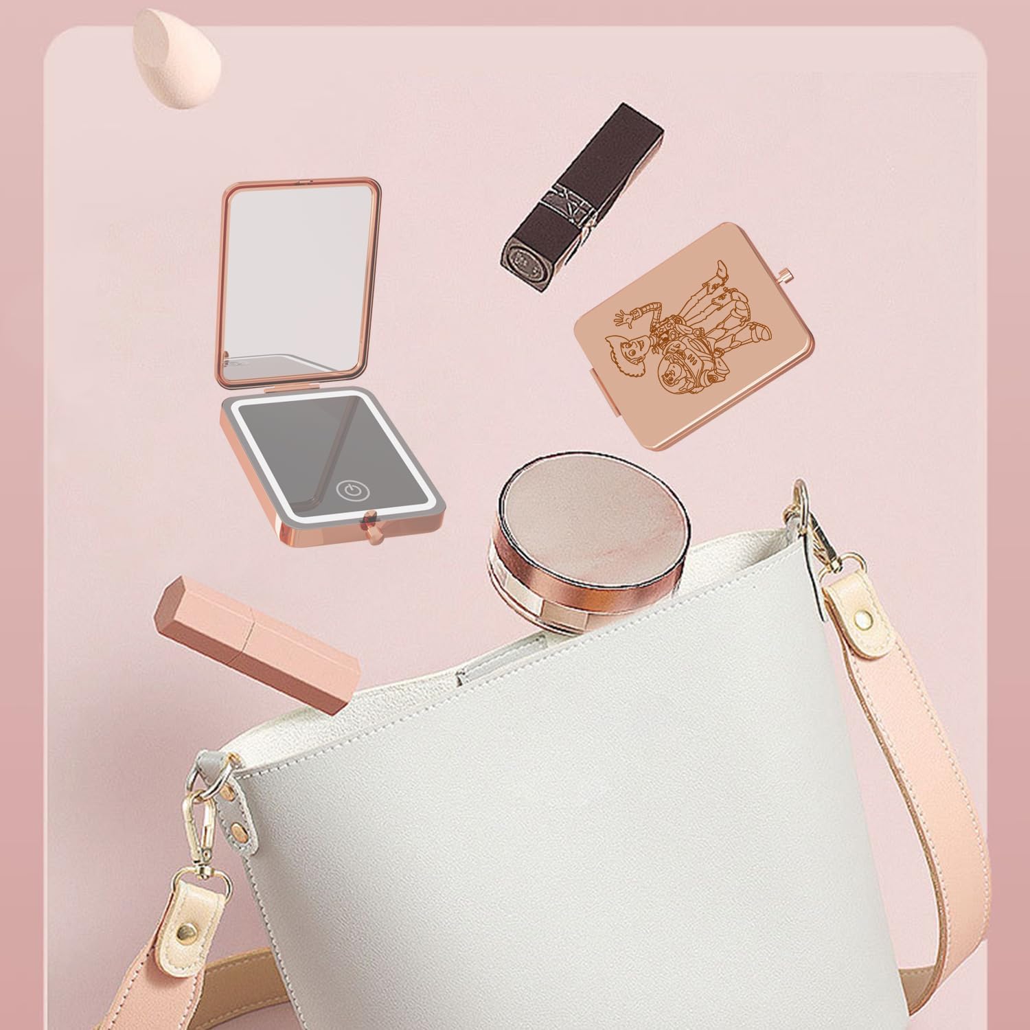 - 【Portable Design】: Compact handheld makeup mini mirror fits easily into your pocket, purse, handbag or makeup bag. Use it anytime, anywhere,travel essentials.